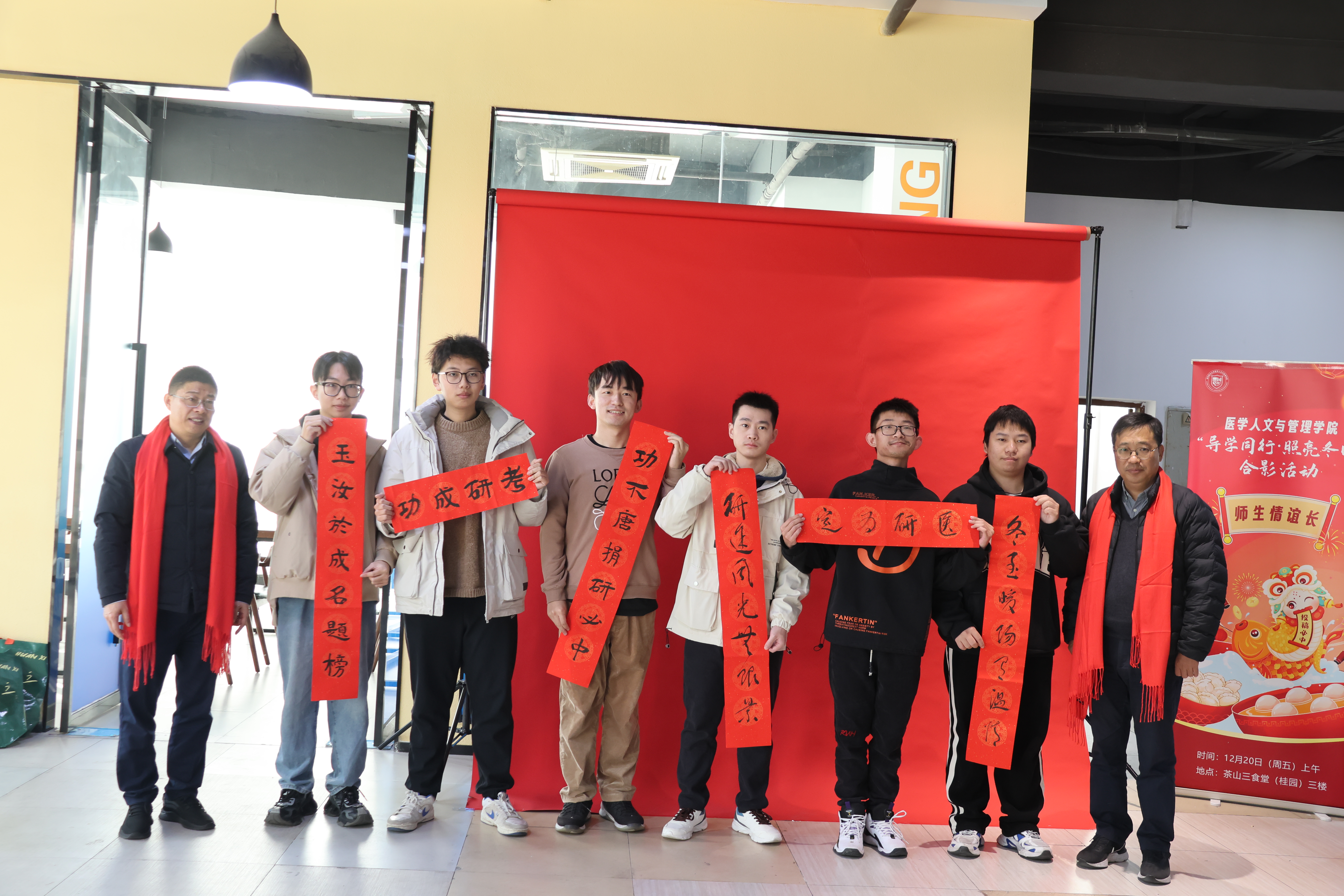为强化导学关系建设,增进研究生与导师的互动,丰富研究生课余生活,促进身心健康发展。学院于近日在茶山校区开展了“导学同行·照亮冬日”师生拍合照活动。活动现场气氛热烈,导师们面带和蔼的笑容,眼中满是对学生们的关怀与期待;学生们则兴奋地簇拥在导师身边,在镜头前定格温馨的画面。随后,热气腾腾的水饺和汤圆端上桌,大家围坐在一起,学生们积极分享自己在学习、科研过程中的点点滴滴,导师们给出宝贵的建议和指导,师生之间的交流轻松而愉快。学长学姐们怀着感恩之心,讲述着导师对他们的悉心指导,同时也为师弟师妹们传授与导师相处的经验,让这份师生情谊得以延续和传承,为整个活动增添了温暖的人文底色。
