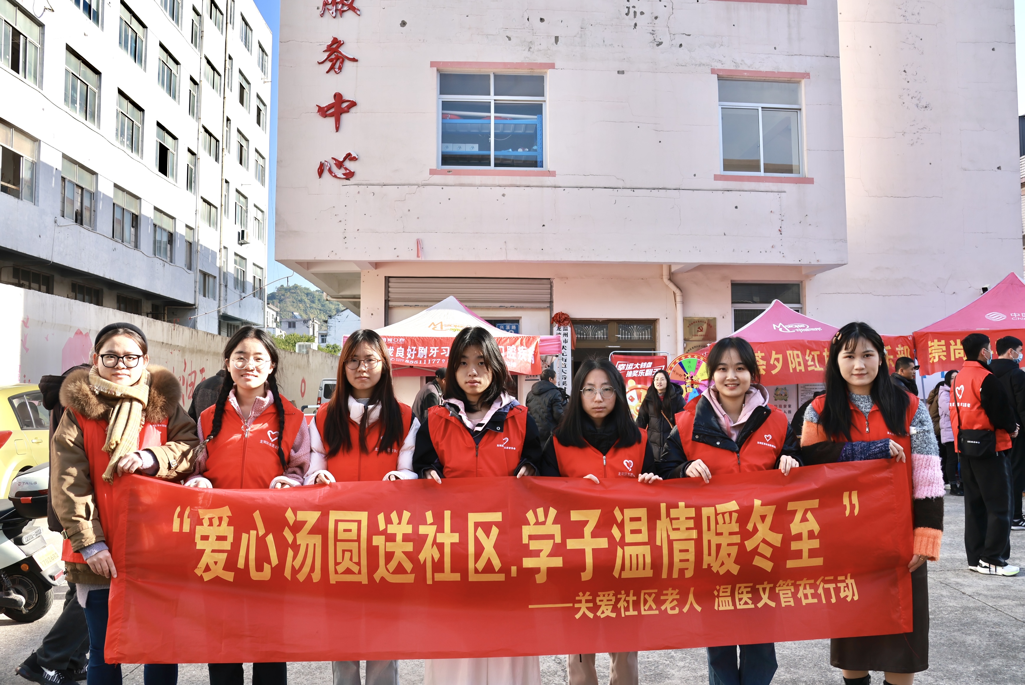 文管学院积极组织学生踏出校园、投身反哺社会的温情行动。12 月 20 日,“爱心汤圆送社区?学子温情暖冬至”—— 关爱社区老人?温医文管在行动于罗西社区温情启幕,同学们怀揣热忱,带着亲手精心熬煮的汤圆奔赴社区。那一碗碗软糯香甜的汤圆,满含着青年学子诚挚的心意,传递了节日专属的温暖与祝福,用实际行动诠释文管学子的社会责任,这份关爱化作火种,燃亮社区的冬日,绵延至新岁。