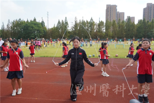 启动仪式结束后,杨倩和学生一起跳绳、打篮球。“参加户外活动,多看一看大自然,也能起到缓解眼睛疲劳的作用。”杨倩说,希望学生们能踊跃投身体育运动,培养一项热爱的体育项目。