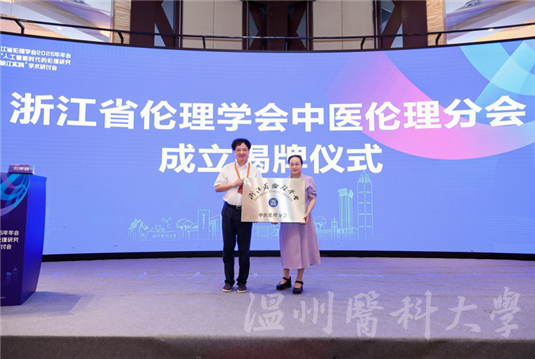 会上,浙江省伦理学会中医伦理分会正式成立,浙江省伦理学会会长、浙江工商大学浙商研究院院长陈寿灿向中医伦理分会秘书长汪向红授牌。浙江省伦理学会中医伦理分会将设立在浙江中医药大学。