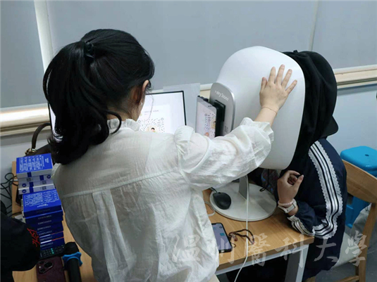 讲座结束后,"AI云镜检测区"排起长队。这台能穿透皮肤表层的检测设备,将肉眼难辨的皮肤问题清晰呈现在分析报告中。"原以为自己皮肤状态不错,没想到藏着这么多潜在问题!"一位学生在查看报告后,当即表示要将科学护肤列入日常清单。
