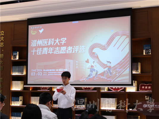 春“锋”送暖,善举成林。学雷锋日前夕,温州医科大学还举办了2025年度“十佳青年志愿者”评选活动,让来自各个二级学院、附属医院志愿领域的佼佼者齐聚一堂,分享志愿故事、交流服务心得。在他们之中,有温州地区第133例造血干细胞捐献者、有为白血病患儿蓄发2年的捐发志愿者、有克服极寒缺氧的“光明行”志愿者、有致力于遗体捐献宣传的人体科普讲解员……这些优秀的志愿者代表,正是温医大青年的缩影。