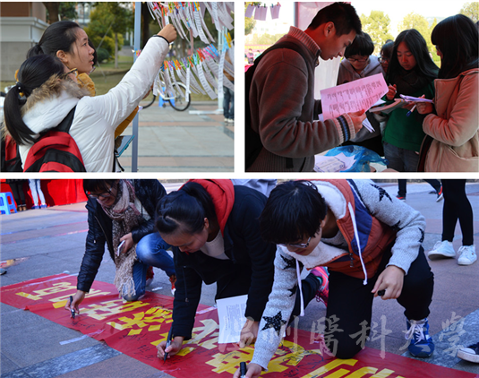 宪法日当天,仁济学院团委、学生会也联合校轩辕法学社,开展宣传教育活动。大家拉起横幅、支起展架、挂起各色的彩条,吸引不少同学驻足。除了宪法,合同法、消费者权益的维护、医疗事故解读、学生的权利与义务等内容也被列入了展板宣传。轩辕法学社社长田南辉说:“这些内容跟我们同学还是息息相关的,其中合同法的内容还能为明天参加招聘会的同学提供参考。”