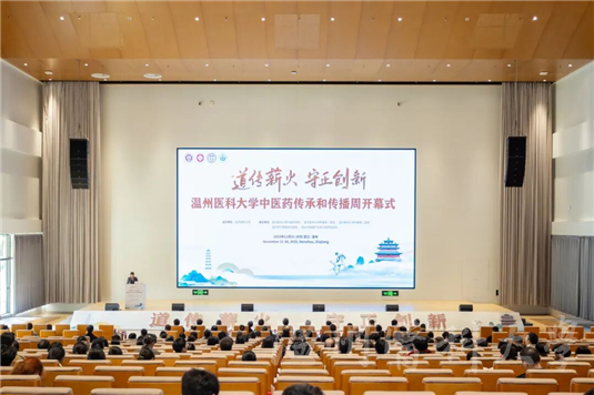 11月21日,温州医科大学第二届中医药传承与传播周活动在国际交流中心报告厅拉开帷幕,院内制剂高质量发展学术会议同步举行。来自国内科研院校、医疗机构、知名企业的百余位嘉宾代表齐聚学校,围绕中医药的传承创新与传播发展深入交流。