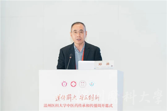 温州医科大学校长李校堃院士致欢迎辞。温州市卫生健康委员会党委委员、副主任郑云蒸,温州市市场监督管理局党委委员、副局长邓湧致辞。校领导沈贤、林丽,全国名老中医药专家学术经验继承指导老师程锦国,国家岐黄学者、中医药学院学术院长谢恬等出席活动。