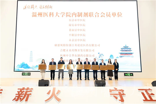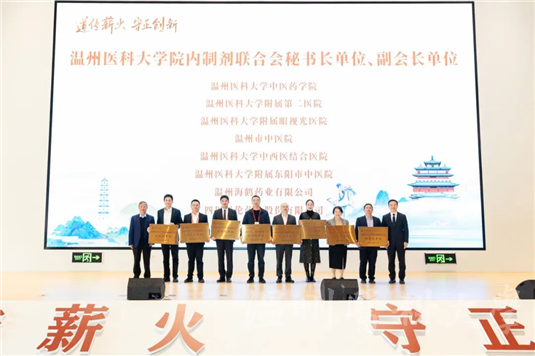会上,温州医科大学院内制剂联合会成立,并举行会长聘任仪式和会长单位、秘书长单位、副会长单位及会员单位授牌仪式。联合会旨在汇聚政产学研医各方力量,共同破解转化密码,让更多“医院好方”成为“市场好药”,为中医药现代化与产业化注入强劲动能。