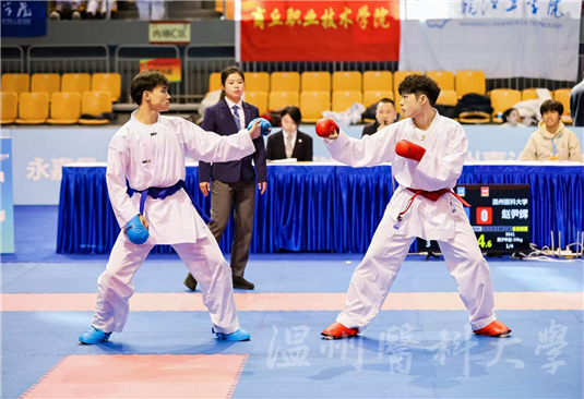 在第13届中国大学生空手道锦标赛上,来自77 所高校的743 名运动员同台竞技。我校跆拳道队在董凤鸣、王守都老师的指导下,斩获优异成绩:第一临床医学院(信息与工程学院)钱徐徐同学(49kg级别)获金牌,第一临床医学院(信息与工程学院)朱健珲同学(68kg级别)、卓越中心赵尹辉同学(59kg级别)、精神医学学院杨联亮同学(80kg级别)分别获银牌,第二临床医学院徐延同学(62kg级别)获铜牌。