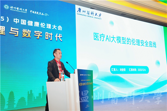 刘俊荣作题为《AI大模型在医疗健康领域应用的伦理安全底线》的报告,他表示医疗AI大模型的开发与应用必须严守伦理安全底线,基于医学伦理的尊重、不伤害、公正和诚信原则,他指出当前在数据隐私、安全责任归属、算法公平性及决策可解释性等方面存在显著风险,必须通过技术与制度双重保障,并始终坚持人类在关键决策中的最终主导与监督权。