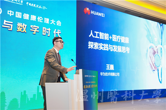 中华医学会医学伦理学分会主任委员、广东省医学伦理学研究中心主任刘俊荣,中国政法大学比较法学院院长、“长江学者”特聘教授解志勇,中国人口与健康出版社党委书记、社长李坚高,温州医科大学党委委员、副校长兼附属第一医院党委书记沈贤,华为技术有限公司战略研究院医疗健康产业发展专家王巍作主旨报告。
