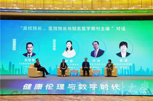 在“高校院长、医院院长与知名医学期刊主编”对话环节,《中国医院院长》杂志执行社长张智慧与温州医科大学副校长兼药学院院长林丽、中华医学会杂志社副社长刘冰、湖南省妇幼保健院副院长黄寒围绕数字健康伦理的多元共建话题进行了深入探讨,分别从技术发展、医疗实践、期刊传播等不同维度展开了剖析。林丽结合高校教学科研工作实际,指出在数字健康研究过程中,要重视数据隐私保护与伦理规范,确保科研成果既具有创新性又能符合伦理要求;刘冰从医学期刊的视角出发,强调在传播数字健康相关研究成果时,要严格审核内容的伦理合规性,引导正确的学术导向;黄寒从医院临床应用层面分享经验,提到在引入数字健康技术时,要充分考量对患者权益的影响,保障医疗服务的安全与公正。
