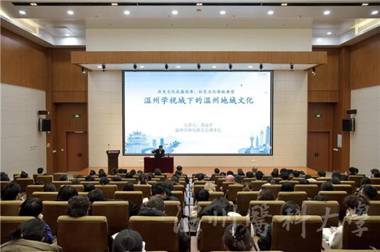 为深入推动地方党史与文化资源融入高校思政课教学,打造具有本土特色的大思政育人体系,12月15日上午,“新时代真理的味道·续写创新史——地方党史和文化资源融入高校思政课教研活动”第一课在温州医科大学生物科研楼开讲。温州市温州学研究联合会理事长葛益平主讲题为“温州学视域下的温州地域文化”主题思政课。校党委书记金焕民出席会议,200余名师生代表参加会议。
