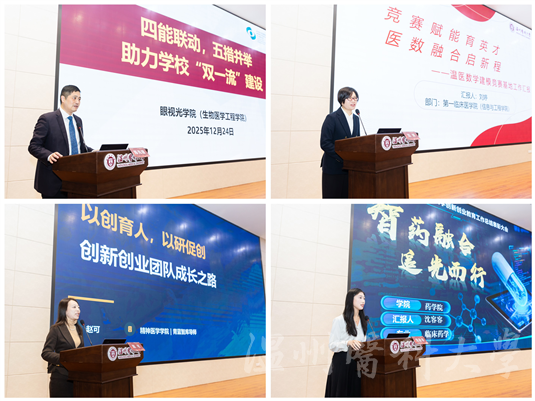 李校堃校长对2025年学校创新创业教育取得的成果表示肯定。他强调,创新创业教育是培养高素质医学人才的关键抓手,是服务“健康中国”战略、赋能区域医疗健康产业发展的重要举措,也是学校对接社会、搭建实践平台的重要路径。当前处于知识爆炸时代,传统教学模式亟待革新,学校需重构教学体系,敞开校门,培育学生的创新思维与知识重构能力。李校堃表示,双创教育发展空间广阔,学校拥有眼视光、药学、临床医学等优质学科资源,以及中国眼谷、基因药谷等产业平台,潜力巨大。学校将构建“人人参与、人人热爱”的双创生态,激活校内外优质资源,助力学子成长为敢创会创的有为青年,为学校高质量发展与健康中国建设注入源源不断的青春力量。