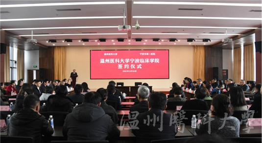 此前,温州医科大学与宁波市第二医院双方在宁波举行合作签约仪式,共同启动温州医科大学宁波临床学院建设。温州医科大学党委书记金焕民,党委委员、副校长朱雪波一行,宁波市卫生健康委员会党委委员、副主任孙向东以及宁波市第二医院党政领导班子出席签约仪式。