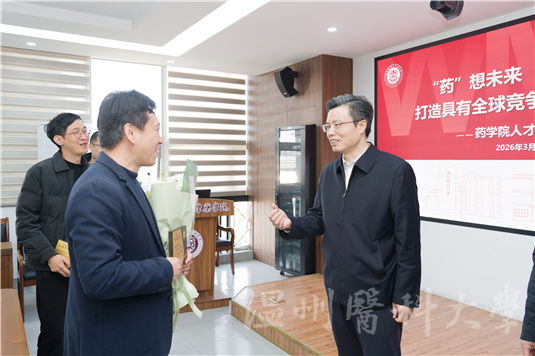 3月12日下午,校党委书记金焕民一行先后走访康复医学院、药学院和眼视光学院(生物医学工程学院)等学院慰问人才代表,为他们送上诚挚问候,并为2026年新入职国家级人才送上欢迎状、为2025年新入选国家级人才代表颁发祝贺状。