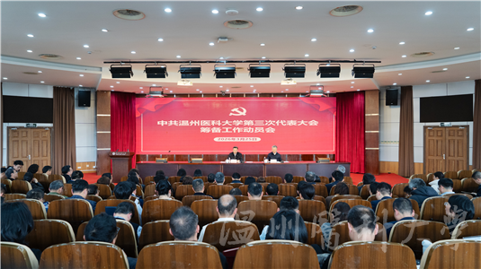 3月25日,温州医科大学第三次代表大会筹备工作动员会在茶山校区旭光厅召开。校党委委员、纪委委员,党员中层干部,二级党组织委员,党支部书记代表,组织员参加会议。校党委书记金焕民作动员讲话。会议由校长、党委副书记李校堃主持。