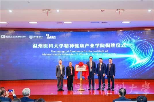 现场举行了浙江省重点支持现代产业学院-精神健康产业学院揭牌仪式。该学院由精神医学学院、附属康宁医院、瓯江实验室等单位联合共建,重点聚焦精神专科医疗服务、精神类药物与医疗器械、心理健康评估与干预技术、精神健康衍生业态四大产业方向。产业学院的成立,是学校整合“政、校、医、企”多方资源的重要创举。未来,该学院将致力于打造全国领先的精神健康产业人才培养与科技创新平台,为精神健康产业的高质量发展提供关键的人才与技术支撑。