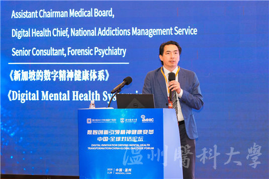 新加坡精神卫生学院医疗委员会副主席、国家成瘾管理服务中心主任Christopher Cheok Cheng Soon(石清顺)作《新加坡的数字精神健康体系》主题报告。