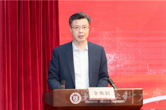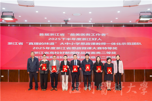 金焕民对2025年宣传思想文化工作取得的新进展新成效表示肯定。他强调,2026年是建党105周年、“十五五”规划开局之年,也是学校加快建设高水平大学的关键一年,要牢牢把握新时代文化使命,加强理论武装,以学习推动工作服务“国之大者”;要大力弘扬地域精神特质,在赓续“浙江精神”中汲取奋进力量;要持续完善立德树人机制,在构建“四全育人”新格局中提升育人实效,为建设高水平医科大学提供坚强思想保证、强大精神动力和有利文化条件。