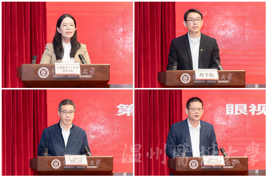 研究生工作部、研究生院,药学院,第二临床医学院,附属第二医院、育英儿童医院,眼视光学院(生物医学工程学院)、附属眼视光医院分别围绕新闻宣传、文化建设、精神文明建设、思政工作等方面介绍了经验和做法。