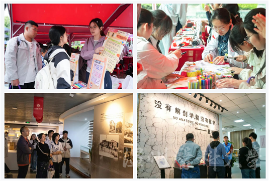 校史馆、人体科学馆、图书馆等场馆有序开放。文艺表演、急救技能体验、药皂制作、医学绘画、创新创业游园会等互动活动精彩纷呈,让大家在亲身体验中感受医学魅力与校园文化活力。