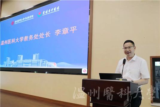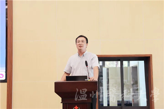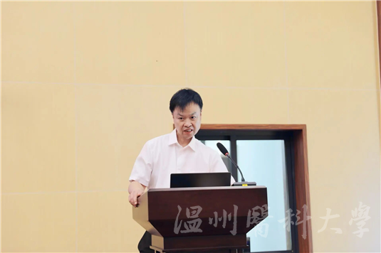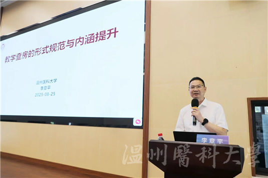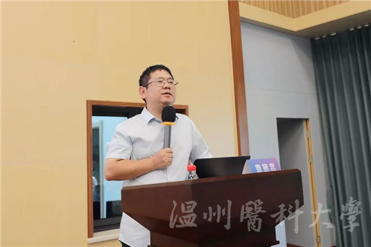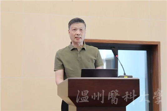 袁拯忠作《中医临床能力培养》的报告,他结合2025版中医学专业教育标准和2025年中医学专业认证情况,指出温州医科大学中医学专业学生培养要加强“大思政”引领、“小班化”教学、“重传承”实践、“强融合”教育、“国际化”拓展等,重点从学经典、早临床、跟名师方面强化学生中医临床能力培养。