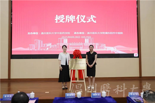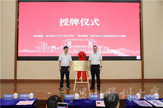 活动现场,温州医科大学分别向中医药学院和东阳市中医院授予“中医药学院教师发展分中心”和“温州医科大学中医临床技能中心分中心”牌匾。这一举措标志着校院、院院协同育人工作进入崭新阶段,东阳市中医院正式成为我院中医药临床教学体系的关键一环。未来,中医药学院和东阳市中医院将在教师发展、临床教学资源整合与技能培训等领域开展深度协作,为创新中医药人才培养模式、助力中医药教育高质量发展持续赋能。