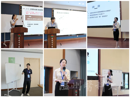 此次活动吸引了主办单位温州医科大学中医药学院的青年教师以及来自温州医科大学附属第一医院、附属第二医院,东阳市中医院,温州市中西医结合医院,温州市中心医院,台州市中医院,台州市中心医院,丽水市中医院,瑞安市人民医院,昆山市中医医院等十余家单位31名教师同台竞技。他们通过教学设计和课堂教学两个环节的激烈角逐与深入探讨,全面展示了各自的教学理念、教学设计能力、课堂掌控力以及教学成效。在课堂教学竞赛环节,选手们通过之前的抽签顺序,一一上台进行教学展示,通过案例剖析、情景模拟、互动问答等多种教学方法和手段,将专业知识与实际案例相结合,生动地呈现了各自的课堂教学风采。评委们对参赛教师的教学设计、教学过程、授课技巧等进行了细致的点评和指导。