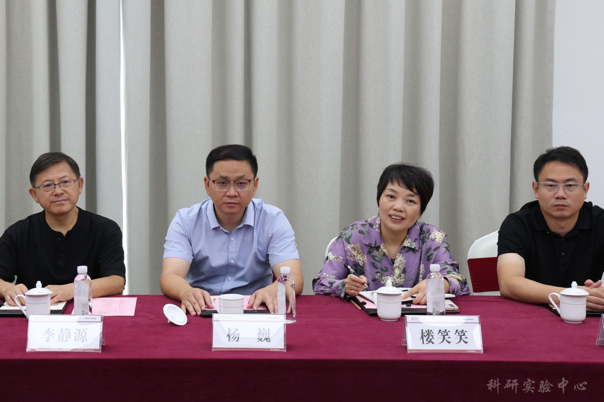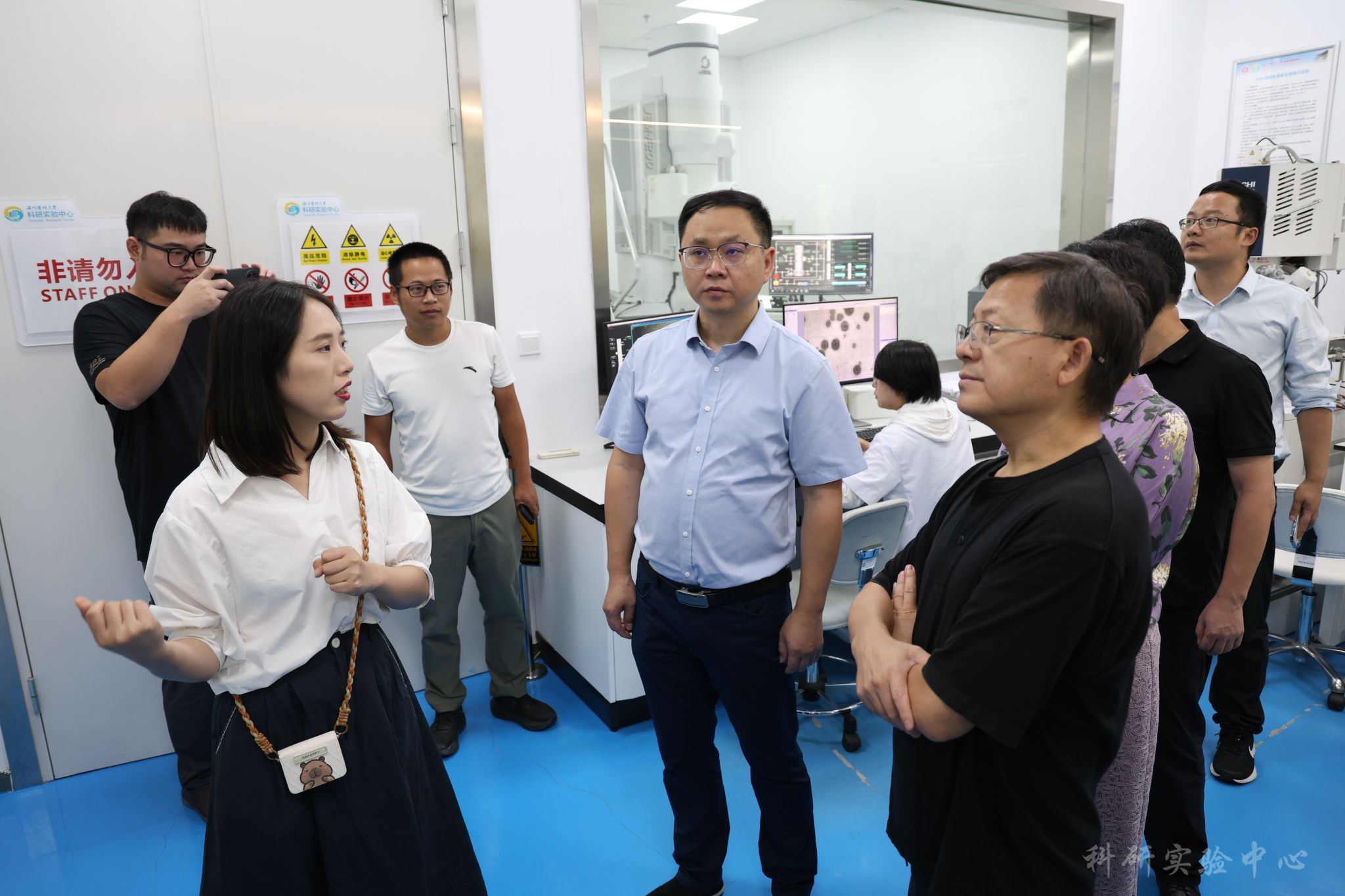 会前,调研团在中心人员陪同下实地考察了生物医药科研大楼大型仪器技术平台,走访了南一、六楼各功能研究室及南十二楼全国重点实验室。调研团细致考察实验室空间规划、设备配置与管理流程,并就实验室功能布局、安全规范与运行机制等问题与现场人员深入探讨。