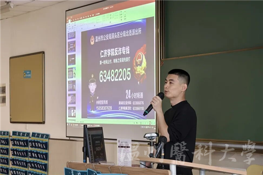 茶山派出所钱启勋警官结合校园高发案例,深入剖析了电信诈骗、盗窃、侵占等治安问题的防范要点,提醒安全委员们要时刻保持警惕,并传授了紧急情况下的自救技巧。