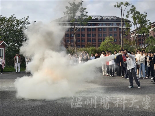 理论培训结束后,滨海校区参训安全委员移步操场,在洞头区消防救援大队队员指导下进行了模拟“逃生屋”和灭火体验。在灭火演练环节,大家轮流操作灭火器,按照“提拔握压”口诀,迅速扑灭模拟火源,将理论知识与实际操作紧密结合,有效提升了应对突发火情的实战能力。