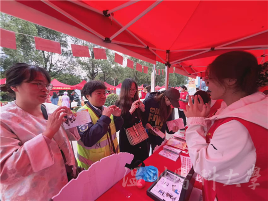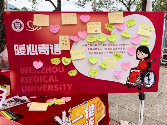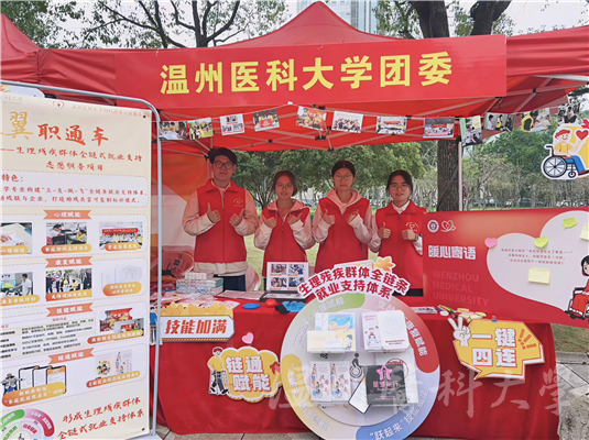 10月30日上午,由共青团浙江省委、省直机关工委联合主办的“共富青年V站”走进台州服务活动在台州市椒江区市民广场举行。我校志愿服务项目《展翼职通车——生理残疾群体全链式就业支持志愿服务项目》受邀参加现场展示,通过实践行动诠释了温医大青年志愿者在共同富裕示范区建设中的主动作为与青春风采。