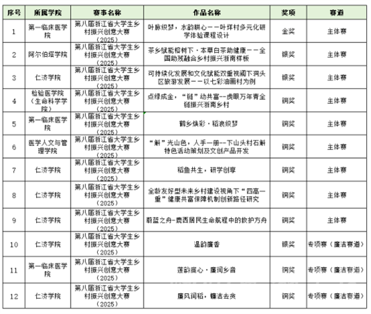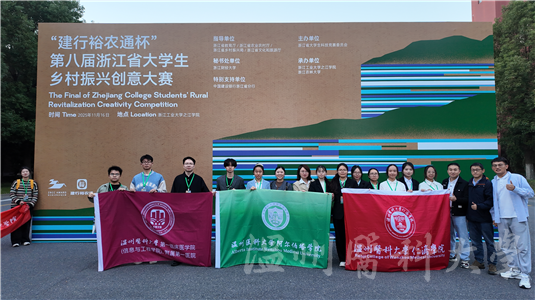 本次大赛以“创意,让乡村更美好”为主题,自启动以来便得到全省高校的积极响应,吸引了108所高校的5325组团队、41464人次踊跃参赛。经过多轮激烈角逐,最终诞生238项金奖、351项银奖、582项铜奖,一批兼具创新性与实用性的乡村振兴方案脱颖而出,为浙江乡村发展注入鲜活动力。未来,我校将继续深耕乡村振兴领域,鼓励更多青年学子循着榜样的足迹,主动扎根乡村、挥洒青春才华,将个人理想融入乡村振兴的时代浪潮,为浙江共同富裕示范区建设与乡村全面振兴贡献的温医力量。