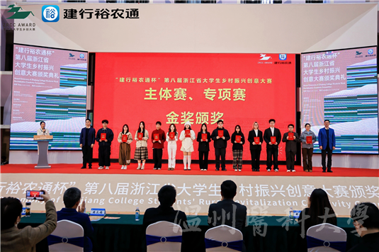 11月26日,“建行裕农通杯”第八届浙江省大学生乡村振兴创意大赛闭幕式在浙江工业大学之江学院举行。我校斩获主体赛金奖1项、银奖2项、铜奖6项,获专项赛廉洁赛道银奖1项、铜奖2项,在获奖数量上取得新突破。