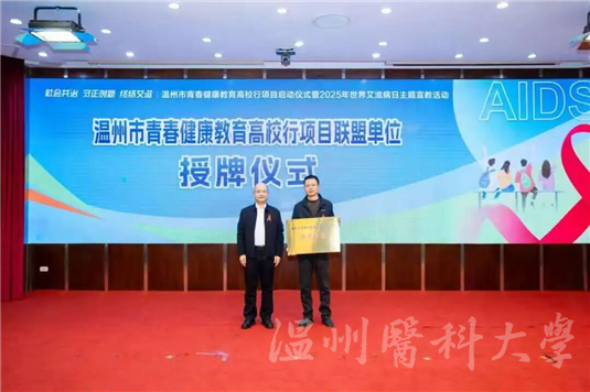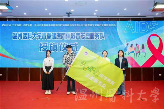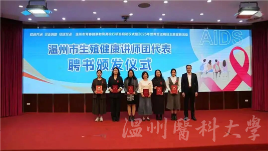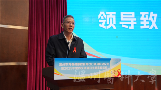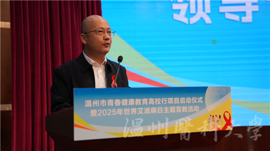 12月2日,以“社会共治,守正创新,终结艾滋”为主题的温州市青春健康教育高校行项目启动仪式暨2025年世界艾滋病日主题宣教活动在温州医科大学茶山校区举行。温州医科大学党委副书记汪军洪致辞,温州市计划生育协会专职副会长蒋传彪讲话。温州市人民医院(温州市妇幼保健院)、温州市计划生育协会、温州市妇幼保健院有关负责人,以及学校相关职能部门、学院有关负责人出席活动。