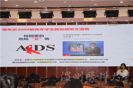 启动仪式后,温州市生殖健康讲师团代表、温州市人民医院吴晓雪主任医师带来大学生生殖健康与防艾科普讲座。