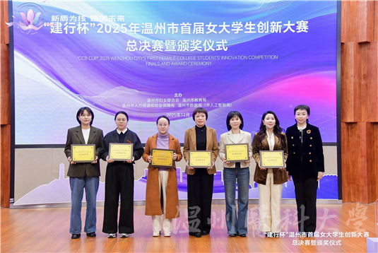 12月2日,2025年温州市首届女大学生创新大赛总决赛暨颁奖仪式在温州大学举行。我校各参赛团队斩获本研组唯一的金奖,铜奖2项,我校获优秀组织奖。