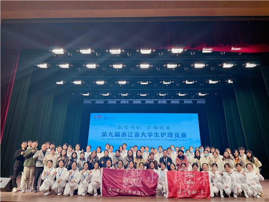12月6日,第九届浙江省大学生护理竞赛在湖州学院落幕。本次竞赛以“数智领航,护佑健康”为主题,吸引了全省16所高校84支代表队同台竞技。温州医科大学护理学院派出13支队伍,覆盖技能赛道(护理技能组、助产技能组)、创新赛道(专业创新组、非专业创新组)全类别竞赛项目,各代表队凭借扎实的专业功底、创新的实践理念和默契的团队协作,斩获“二金两铜”的优异成绩,温州医科大学获“优秀组织奖”。