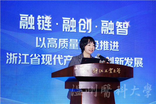 会议特别邀请华中科技大学教育科学研究院余东升教授、常州大学副校长李忠玉教授开展专题分享。来自全省各高校的现代产业学院负责人及产教融合合作企业代表齐聚一堂,围绕现代产业学院的建设路径与创新发展等议题开展深入研讨。会上还公布了浙江省现代产业学院典型案例名单并举行证书颁发仪式,检验医学院(生命科学学院)生物技术与智慧检验产业学院的建设成果作为全省15个典型案例之一成功入选。