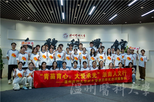 我校“承启荣光”志愿服务队成立于2014年,队名源自温州首位遗体捐献者徐启荣先生,寓意承其荣光、不懈前行。团队以温州医科大学人体科学馆为活动基地,面向公众开展生命科普讲解,并走进学校、社区开展健康义诊与公益宣传。在持续推动人体科学知识走向大众的同时,团队还致力于开展遗体捐献宣传与关怀工作,通过贯彻“科普宣传为核心,人文关怀为重点”的理念,构建了独具特色的“CARE”遗体捐献宣传志愿服务模式,致力于从人文性关怀生态、艺术性宣传内容、融合型传播途径、沉浸式教育场景四个维度推动温州市乃至全国的遗体捐献事业发展。