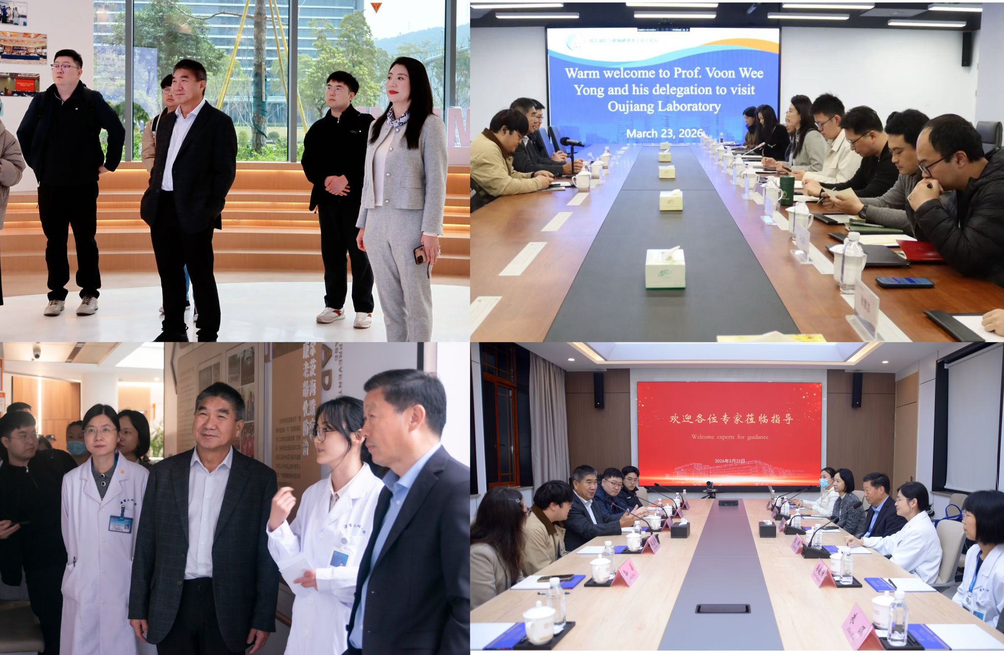 交流期间,Voon Wee Yong院士一行先后参观了老年研究院实验室、温州医科大学生物医药科研楼公共实验平台,并前往瓯江实验室与国际阿尔茨海默病研究与防治中心进行交流座谈。