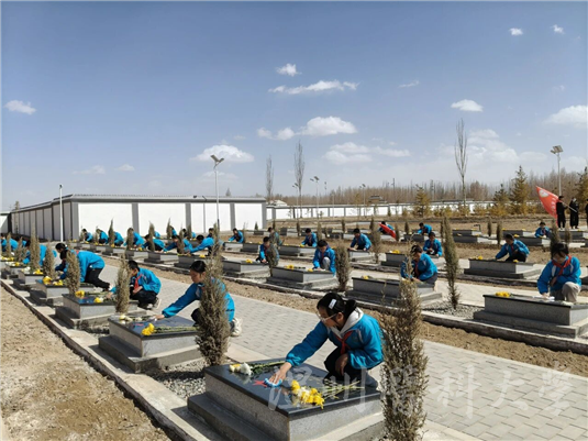 4月3日,温医大研支团携手站前路小学师生代表,再次走进格尔木烈士陵园,开展实地祭扫活动。