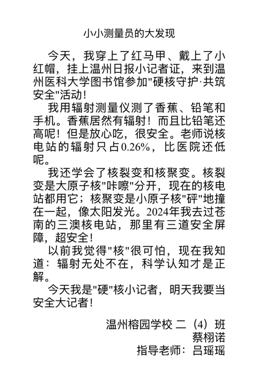 在“硬核守护·共筑安全”主题活动中,小记者们通过实测与体验,成功破除了对“核”的刻板印象。