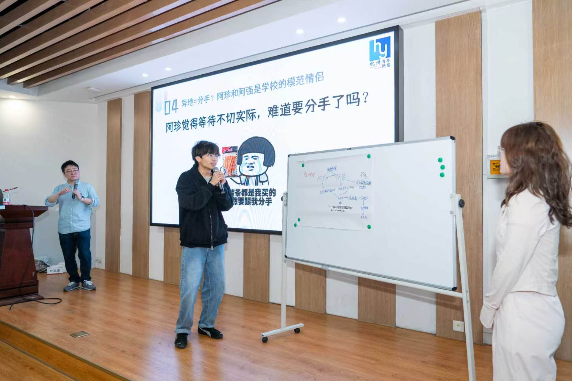 本次培训由国家级青春健康主持人何一奇老师领衔授课。他系统讲解了青春健康高校项目的整体框架,结合全国数据与温州本地实践,帮助学员厘清项目脉络、明确同伴教育骨干的角色定位。并以“原来恋爱也需要学习”为主题开展人际交往示范课,通过案例讨论引导学员探讨亲密关系中的尊重、边界与责任。