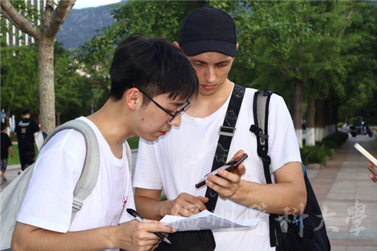 图为温州医科大学巾帼筑梦暑期社会实践团成员进行问卷调研