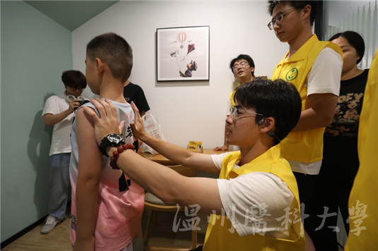 图为实践队成员在苍南青少年宫为小朋友进行脊柱侧弯筛查。农昊宇供图