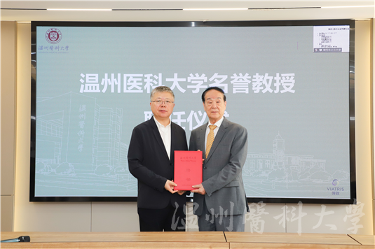 随后的名誉教授聘任环节中,温州医科大学校长李校堃院士代表学校,为刘庭芳教授颁发了温州医科大学名誉教授聘书。李校堃代表学校对刘庭芳教授受聘为名誉教授表示热烈祝贺,并对全体学员的到来表示诚挚欢迎。