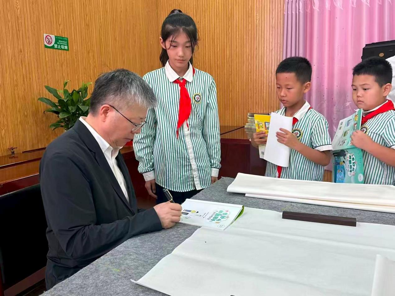 早在2021年,他以个人名义为母校富平县莲湖小学捐助奖学金5万元,设立院士基金。2022年,他又为母校争取助学金5万元,专项建设“追光科学”院士书吧,让“追光”的科学种子在母校落地生根。这次,李校堃再次回到母校,不仅与学校教师分享科学教育与学科启蒙的实践路径,还为孩子们带去了自己牵头编撰的100本签名科普绘本丛书《奇妙的细胞因子——新叶的神奇之旅》。