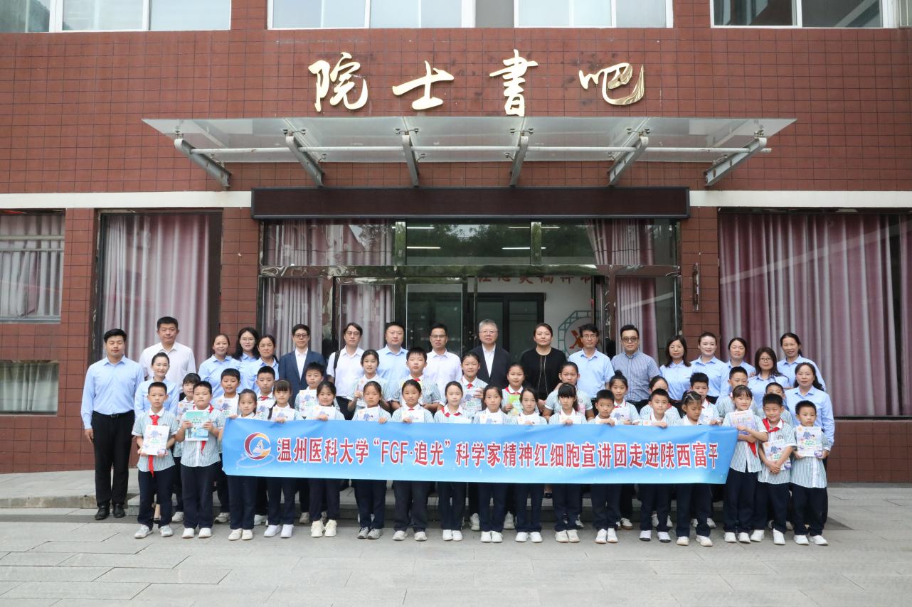 温州医科大学药学院“追光”科学家精神红细胞宣讲员在青海格尔木小学宣讲生长因子故事。