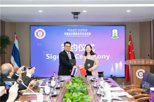 活动期间,学校与泰国马哈沙拉堪大学举行校际合作会谈,进一步拓宽了与泰国高校的合作网络。会上,两校签署了校际合作备忘录,共同开启合作新篇章。中泰高校、医疗机构及企业代表还参观了学校附属医院及学校相关科技产业平台。