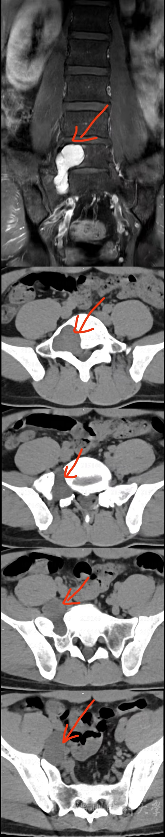 疾病的起点,是持续五年的“反复腰腿痛”。对这位中年男性患者而言,这不仅是身体的负担,更是精神的煎熬。在当地医院检查发现,其腰骶部存在占位性病变,初步诊断为L5/S1右侧椎间孔神经鞘瘤,且肿瘤已侵犯L5椎体。